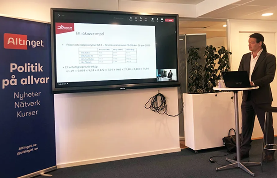 Thomas Tangerås presenterar rapporten. Foto: Pär Holmberg.