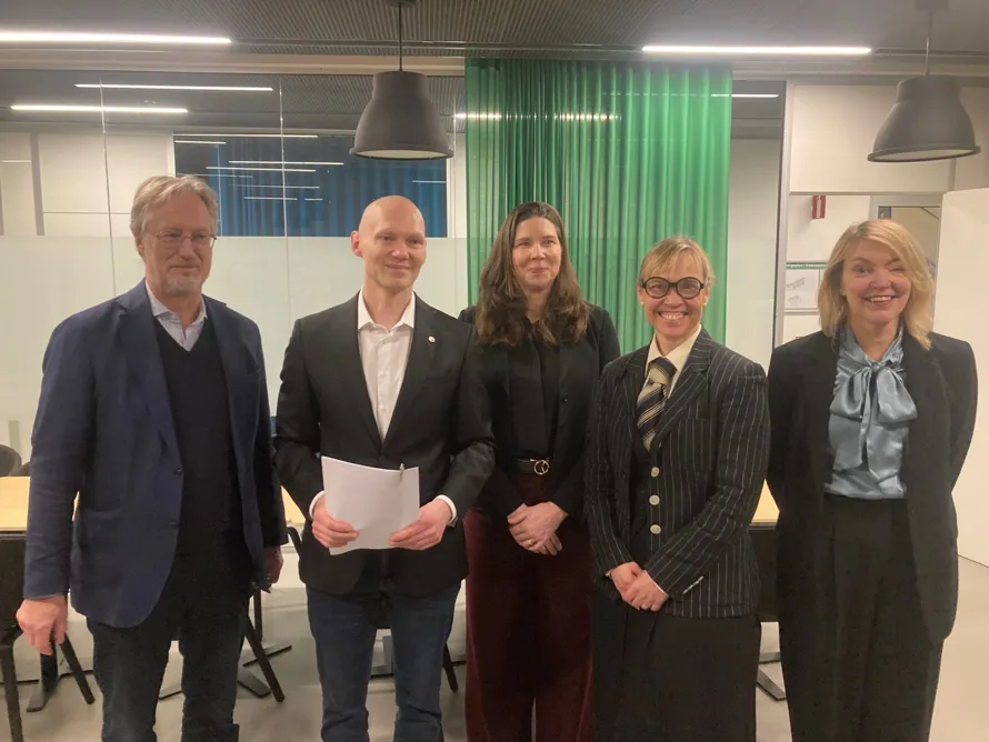 Bilden från vänster: Pontus Braunerhjelm, Niklas Wykman, Kristina Nyström, Charlotta Stern och Åsa Hansson.